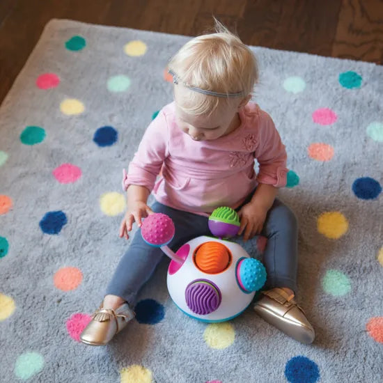 - Features: Squeeze, turn, tap, click, and spin activities; vibrant textured surfaces; tinkling beads inside