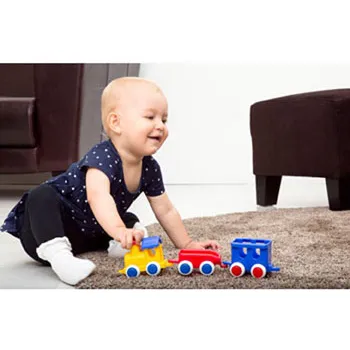 - Develops fine motor skills through grasping, pushing, and rolling vehicles.