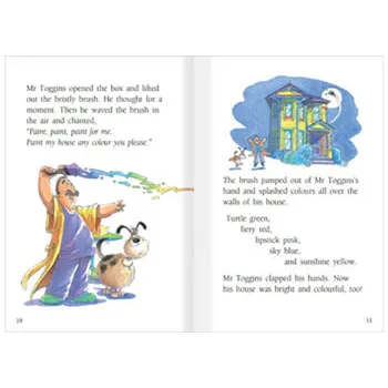 The Painting Lesson is a delightful fantasy set in a quiet neighbourhood, where Mr Toggins is intrigued by his neighbour Mrs Zest's magically changing house. When he discovers her secret paintbrush, he's eager to try it himself-but the results are not quite what he expected! This humorous narrative blends imaginative elements with expressive illustrations and rhythmic, poetic language. Children will love the repetition, engaging vocabulary like crept and peered, and the alliterative and rhyming phrases that bring the story to life. The story also introduces important literacy skills such as exploring character decisions and consequences, identifying initial blends, and interpreting illustrations. This playful tale encourages creativity and critical thinking while reinforcing early decoding strategies.