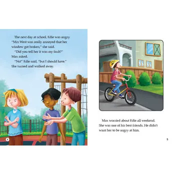 Smash! explores the dynamics of friendship and personal responsibility through a relatable story set in a local park. After a mishap during a soccer game leads to a broken window, Edie is left to face the consequences while her friends run away. Although Edie initially shoulders the blame, her honesty prompts Max and Finn to reflect on their actions and do the right thing. The boys decide to help Mrs West as a way of making amends, and the story ends with a touching gesture that brings the characters together through sport and understanding. This engaging text supports students in discussing moral choices, forgiveness, and problem-solving within everyday situations. With strong visual cues, phonics focus on the /sh/ sound, and vocabulary to discuss feelings and responsibility, Smash! encourages meaningful classroom discussion around doing what's right even when it's difficult.