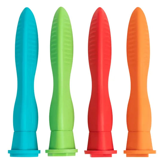 This set of four soft rubber stampers features basic shapes: square, circle, triangle, and hexagon, each in a bright colour - red, blue, orange, and green. Designed with young learners in mind, the stampers have a soft rubber handle that's easy for small hands to grip and manipulate. Perfect for hands-on learning and creativity.