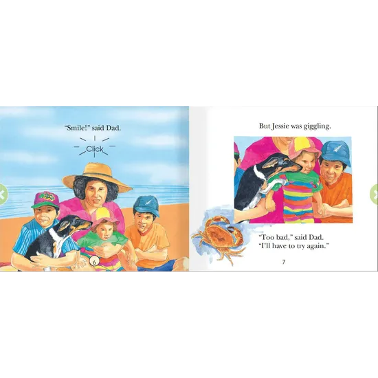 Smile! said Dad follows the amusing attempts of a family trying to capture a perfect family photo, only for something to go wrong each time Dad tries to take the shot. The story showcases a rich variety of vocabulary and punctuation, including repetition and direct speech, to engage readers. It features contractions like œI'll and œI've and playful typography and onomatopoeia such as œclick, adding to the reading experience. Consonant blends œcl, œck, and œsm are present to support phonics skills, alongside high-frequency words like œhave, œher, œagain, œsaid, œhad, and œwas. Smile! said Dad is excellent for guided reading, promoting vocabulary prediction, use of onset and rime for word creation, expressive punctuation reading, and story innovation. Themes of relationships, leisure, and recreation make this book a relatable and fun read.