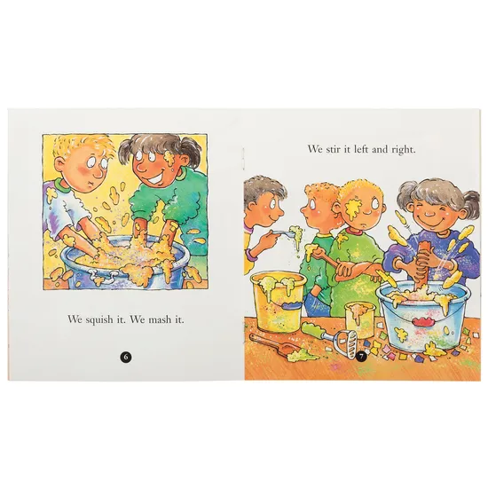 New Paper, Everyone! is a playful and informative procedural text that explains how recycled paper is made, all through a rhythmical and poetic style. What begins with a simple statement evolves into a lyrical pattern that captures young readers' attention while modelling instructional language. The book offers a clear structure with a beginning, middle, and end, and cleverly incorporates sentence repetition (œWe¦) and visual storytelling through illustrations that extend beyond the written text. Phonics features such as blends ("sc" in "scoop") and clusters ("squ" in "squish", "squeeze") are naturally embedded. The use of ellipses to indicate time passing helps readers understand text pacing. With a sustainability theme and artistic undertone, this reader supports both literacy development and environmental awareness.