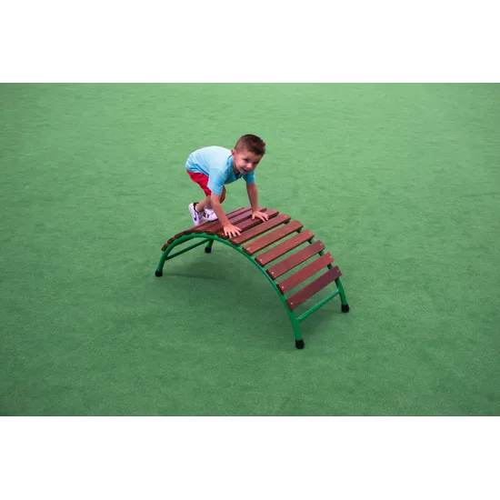 The Log Bridge provides children with an exciting climbing and crawling experience, enhancing balance, coordination, and gross motor skills. Made in Australia from Merbau Timber with a powder-coated aluminium frame, this durable structure allows children to climb over or crawl underneath, doubling as a tunnel for creative play. Designed for standalone use, it can also be integrated into larger play structures by connecting additional accessories such as walkboards to the horizontal rungs at either end. The Log Bridge encourages children to navigate movement challenges while exploring different ways to balance, climb, and stretch. The wooden slats create a natural aesthetic, while the sturdy aluminium frame ensures long-term durability. To maintain its longevity, regular oiling of the timber is recommended.