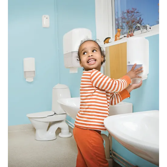 The Tork Air Freshener Spray Dispenser is a practical solution for maintaining a pleasant atmosphere in washrooms. It features simple programming for 24-hour freshness, an easy-to-read refill indicator for better odour management, and a long battery life for low maintenance. Compatible with the Tork Mixed Air Freshener A1 Spray Pack (TRK0010), it offers flexible settings to suit various washroom environments.: