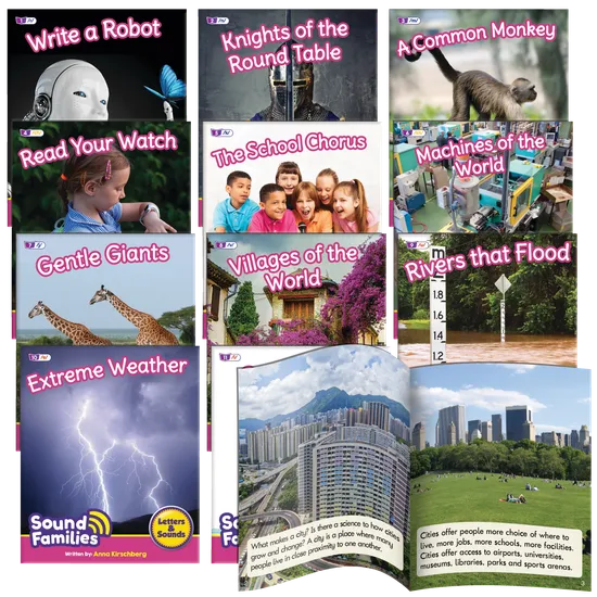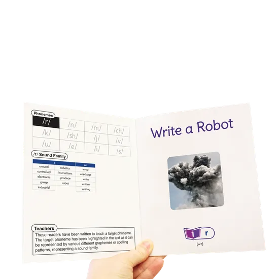 This set of Sound Families non-fiction decodable readers is expertly crafted to support children in mastering consonant and short vowel sounds (/r/ /n/ /m/ /ch/ /k/ /sh/ /j/ /v/ /u/ /e/ /i/ /s/ /zh/ /z/). Each of the 12 books focuses on a specific sound, using highlighted graphemes to enable children to quickly identify the target phoneme within a rich, decodable text. The texts are aligned with Phase 5.5 of phonics instruction, incorporating alternative spellings and common exception words to provide comprehensive phonics exposure. Vibrant photographic imagery enhances the non-fiction content, helping students connect text to real-world concepts. This set supports both decoding and comprehension skills, making it ideal for guided reading or independent practice in Year 1 classrooms.