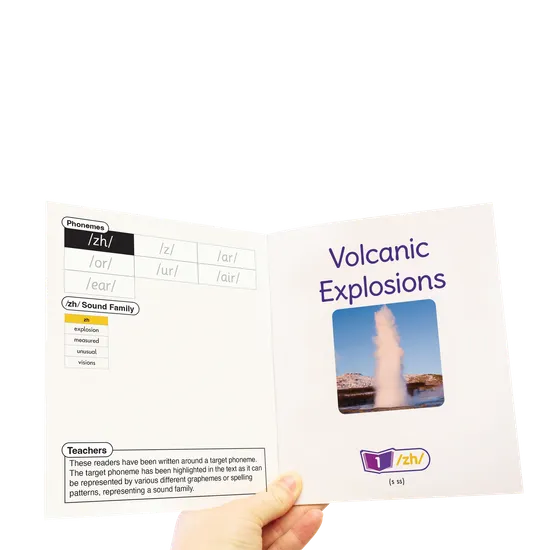 This high-quality non-fiction set focuses on r-controlled vowels (/ar/ /or/ /ur/ /air/ /ear/) through 12 decodable readers-two for each sound. Each reader features highlighted graphemes, helping students readily identify the target sound while learning its various spellings in context. As part of Phase 5.5 phonics instruction, these texts are carefully written to match early reading abilities while introducing key spelling alternatives and common exception words. The use of real photographic images brings the informational text to life and supports comprehension. These books are a fantastic addition to classroom phonics programs, promoting sound discrimination, fluency, and the application of phonics knowledge in meaningful contexts.