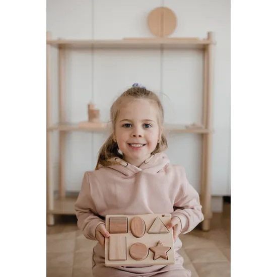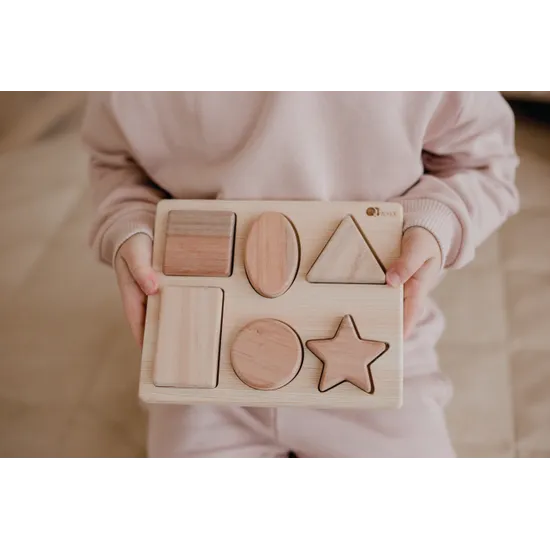 The Chunky Shape Puzzle is a deluxe wooden puzzle designed to provide young children with a fun and engaging problem-solving challenge. Featuring six large, easy-to-grasp pieces, this puzzle encourages toddlers to match similar shapes while exploring different forms and patterns. Opposing shapes are placed beside one another to support early shape recognition and problem-solving skills. Made from eco-friendly plantation timber, this durable puzzle is perfect for early learning environments.