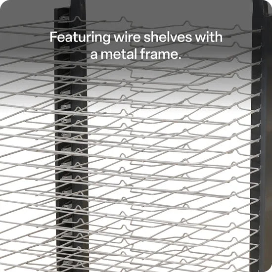 - Wire shelf grid - Enhances airflow for quicker drying and visibility.
