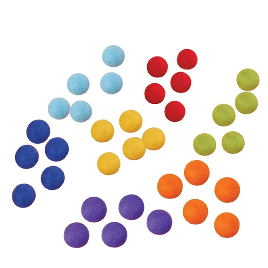 - Use during colour-sorting or matching games, grouping the felt balls with corresponding objects or fabric swatches.