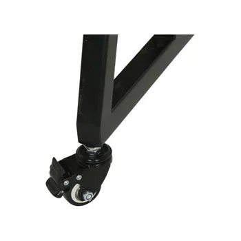 The BAUSPACES Room Divider, measuring 120cm x 40cm x 60cm (excluding castors), features a durable black powder-coated metal frame paired with a dark oak timber-look laminate panel. It's designed for flexible use in classrooms, offering space division with visibility for supervision. Lockable castors enhance its mobility and stability.