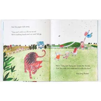 The beautifully illustrated Paper Dolls by Julia Donaldson is a poetic and emotional story about childhood imagination, memory, and resilience. This touching narrative follows a little girl and her five paper dolls as they journey through imaginative scenarios-escaping dinosaurs and crocodiles-only to face the very real threat of a pair of scissors. The story evokes nostalgia and encourages emotional engagement while highlighting the power of storytelling to process feelings and preserve special memories. Written by one of the most celebrated children's authors and illustrated by rising star Rebecca Cobb, this book offers rhythmic and lyrical text that captivates readers of all ages. It is a fantastic choice for sparking discussions about creativity, impermanence, and emotional expression in early childhood education. With gentle language and memorable characters, it provides opportunities to develop empathy, listening, and comprehension skills through narrative exploration.
