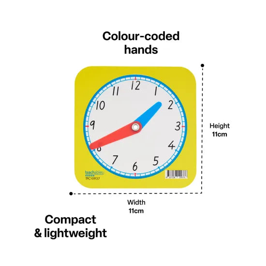 Bring time-telling to life with the Clock Face Small 12hr! This durable plastic clock, measuring 11 x 11cm, is perfect for teaching students to read time in 12-hour format. With colour-coded hands - blue for hours and red for minutes - students can easily understand the passage of time. It's an ideal tool for interactive group activities that engage students in learning time concepts.