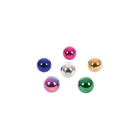 Set includes: 6 coloured stainless steel balls - blue, green, gold, pink, silver, colourburst