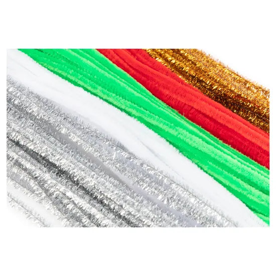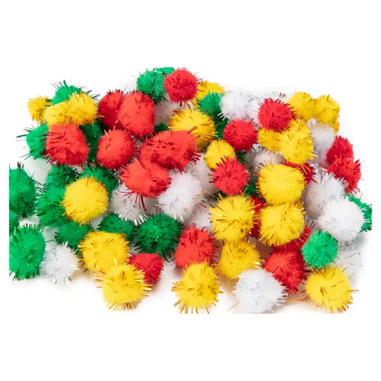 - Contents: 30 pipe cleaners (gold, silver, white, green, red); 25 assorted size joggle eyes; 100 small glitter pom poms (various sizes); Approx. 100 larger red, green, and white pom poms (various sizes)