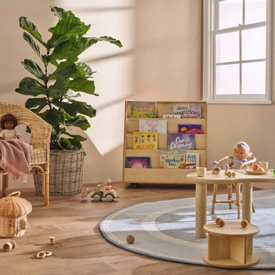 The Blue Oval Rug offers a simple yet striking design for classrooms or libraries. Its thick nylon pile provides softness, while its non-slip backing ensures safety. The solid blue colour adds a calming touch to any space.