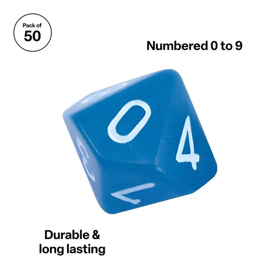 - Pack of 50 ten-faced dice numbered 0-9