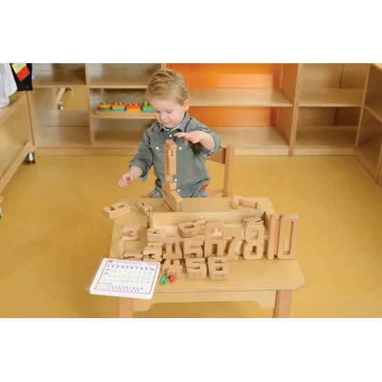 The Masterkidz 1-10 Number Kit consists of 36 solid wooden numbers from 1 to 10, designed to support the development of number learning, sequencing, and basic mathematical skills. Each number is proportionally sized, meaning the height of the number corresponds to its value. For example, the height of number 5 is the same as five number 1's stacked together. This visual aid helps students grasp the concept of quantity, making it easier for them to understand addition, subtraction, and even multiplication.