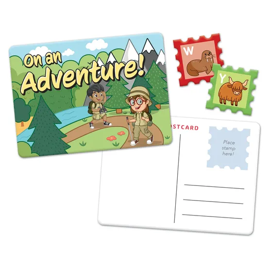 - Includes 26 letter puzzles, write & wipe postcards, and 30 reusable stamp stickers.
