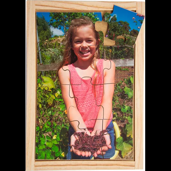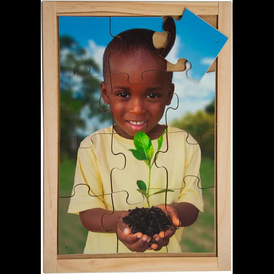 Inspire environmental awareness from an early age with the Sustainable Living Puzzle & Poster Set of 8. This vibrant and engaging set introduces young learners to the importance of sustainability through real-life imagery and relatable scenes. Each 12-piece wooden puzzle shows children participating in eco-friendly actions such as planting vegetables, collecting rainwater, composting with worms, and caring for chickens. The puzzles come neatly stored in individual wooden trays and are complemented by a matching set of posters featuring each puzzle image, making them ideal for both play and display.