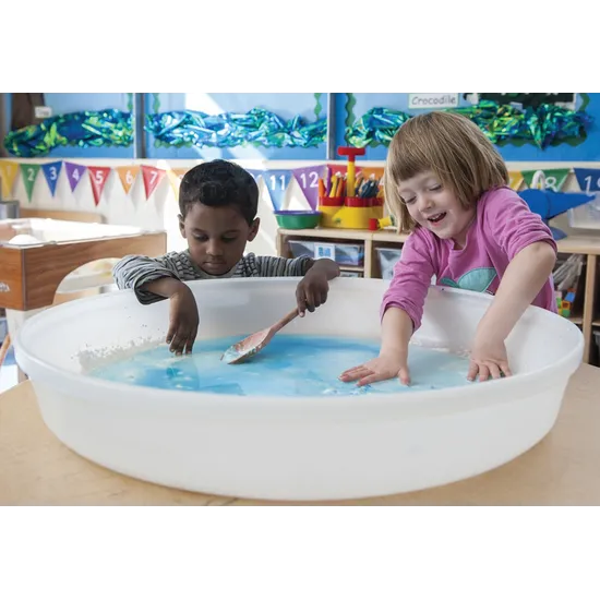 Meet the Deep Spot Tray - White, the smaller yet deeper companion to the classic Tuff Spot Tray! Thoughtfully designed with a 69cm diameter to fit easily through doorways, this tray is the perfect choice for settings where space is limited but imagination runs wild. Its deep design makes it ideal for messy, sensory and small world play, encouraging exploration, creativity and collaboration. The crisp white base serves as a neutral backdrop that allows colours, textures and materials to pop, helping children to distinguish between different shapes, tones and patterns. Acting as a blank canvas, it inspires endless possibilities for imaginative setups - from colourful small world adventures to creative sensory experiments. Durable, easy to clean and simple to move, this versatile tray supports hands-on learning both indoors and outdoors.