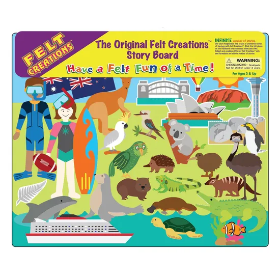 Take your child on a fun adventure with the Felt Creations Explore Australia & New Zealand set! This interactive set allows children to create their own stories using felt pieces depicting iconic places, animals, and people from Australia and New Zealand. Perfect for imaginative play, the felt pieces can be rearranged on the felt board time and time again, offering endless opportunities for creativity. This non-messy, reusable set is a fantastic way for children to learn about these two beautiful countries while developing their storytelling skills. Mix and match with other Felt Creations sets for even more fun and discovery.
