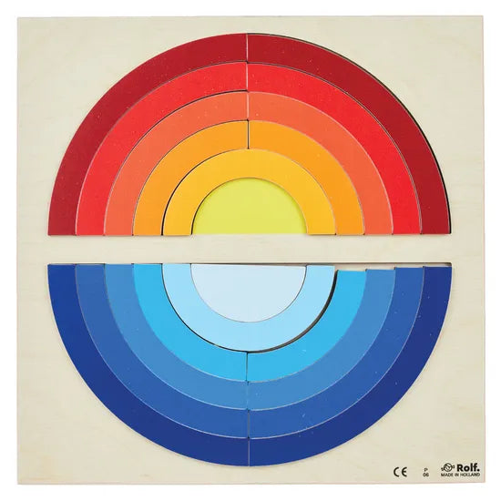 Bring the colours of the sky into your classroom with the Rolf Sunset Puzzle! This beautifully designed 19-piece wooden puzzle captures the transition between day and night through a rich display of 12 colour shades. From the warm glow of a setting sun to the cool tones of twilight, children can explore and experiment with colour combinations while developing their early learning skills through creative play. Each piece is made from high-quality, child-safe wood and fits neatly into a durable wooden storage tray, making it easy to organise and pack away. The thoughtful design invites children to mix and match shades, encouraging imagination and open-ended thinking. Whether used as part of a solar system unit or a standalone colour activity, the Sunset Puzzle inspires artistic expression and curiosity about the natural world.