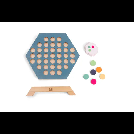 It's not just about completing your pattern - it's about outwitting your opponent! BS Toys 3 in a Row Game is a clever, colourful twist on the classic four-in-a-row game, reimagined for curious and competitive thinkers. Players draw a pattern card, lay it face-up, and take turns placing coloured wooden chips into a hexagon-shaped base, trying to recreate the card's design before their opponent does.
