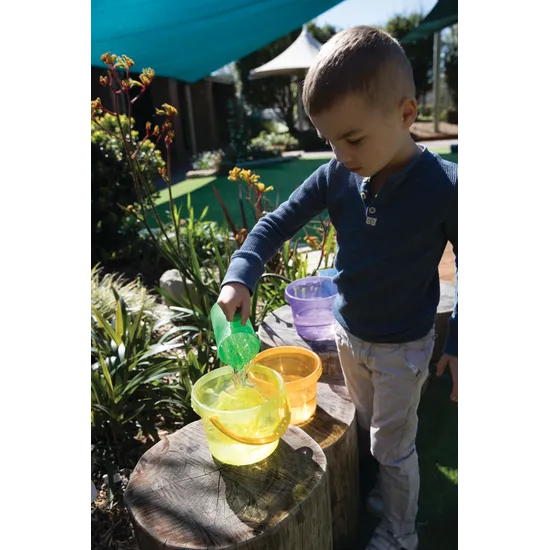 This lovely set of 12 translucent buckets and jugs are great for children to be able to see what they have measured and poured. Have a matching set or mix it up! Children can use it for mud, water or sand for the messy play. There are so many benefits to messy play. Different textures and and consistencies can help children get used to various tactile sensations and get a ˜feel' for hands and fingers.