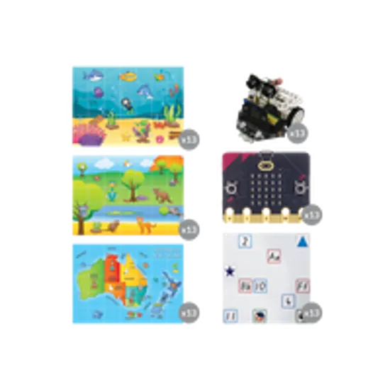 The MaQueen Australian and New Zealand Class Pack offers an immersive learning experience that blends robotics with geography, environmental studies, and storytelling. With 13 MaQueen Plus robots and an assortment of themed mats including ocean, animal, and regional maps, this comprehensive pack empowers students to navigate, code, and solve real-world problems using micro:bit-powered robotics. Designed specifically for Australian and New Zealand classrooms, this kit provides hands-on learning op...