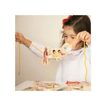 - Enhances fine motor skills and coordination through lacing and manipulation of wooden figures.