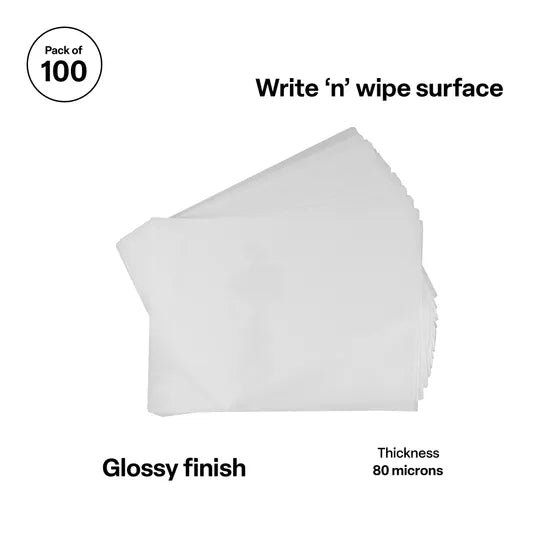 Teachables high-quality A3 laminating pouches with an 80-micron thickness, designed for schools to laminate and protect important documents. These laminate sheets feature a glossy finish, making certificates, artwork, and frequently handled materials tamper-proof and resistant to moisture and damage. Perfect for classrooms, staff rooms, and offices, they help extend the life of educational resources.