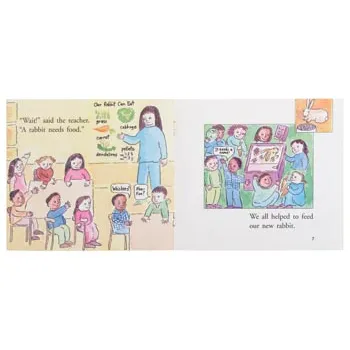 When the class receives a new pet rabbit, excitement quickly turns to responsibility in A Name for a Rabbit. The children must first learn how to care for their furry friend before deciding on the perfect name. This engaging narrative follows their journey of discovery, using a repetitive storyline and speech bubbles to bring the characters to life. Charts and lists within the illustrations provide additional layers of meaning, while inference is subtly required on the final page, encouraging readers to think beyond the text. The frequent use of direct speech, double consonants (e.g., class, rabbit, bubbles) and double vowels (e.g., oo, ee) support phonics instruction. This story is ideal for guided reading to help students develop theme recognition, word decoding, and writing skills that link to events in the story. With themes of animals and responsibility, this relatable tale is a rich resource for literacy development.