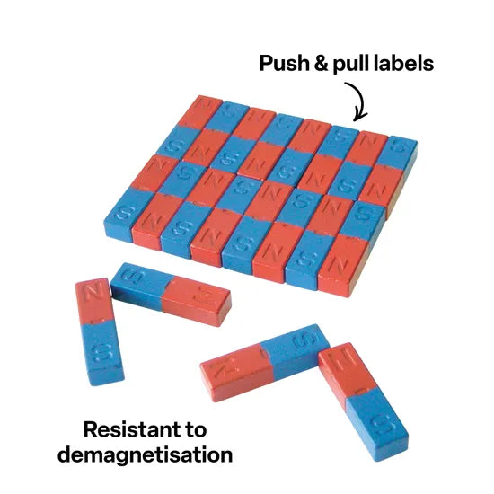 Ferrite magnets exhibit a high degree of coercive strength, making them more resistant to demagnetisation. Large surface area that is magnetic in dependable ferrite material. Magnets are great for highlighting the effect of attraction and repulsion. Also use magnets to investigate things like what is magnetic and what is not.