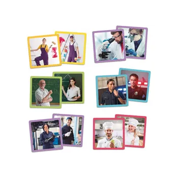 - Builds vocabulary and verbal fluency by naming professions and describing roles.