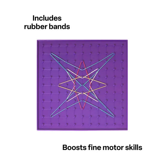 - Supports development of fine motor skills through manipulation of rubber bands.