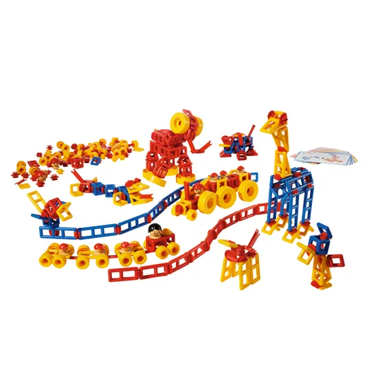 The Mobilo Construction with Large Wheels - Complete Set is an expansive 424-piece construction kit designed to enrich STEM learning and open-ended play in early childhood education. This comprehensive set includes a wide variety of Mobilo's classic building components along with 12 large wheels (74mm diameter) and 15 construction cards to inspire and guide creative model-building. All pieces are packed in a sturdy plastic container for convenient storage and transport. Ideal for collaborative learning and deep STEM engagement, this complete Mobilo set with large wheels encourages young learners to think, design, and build beyond the basics.