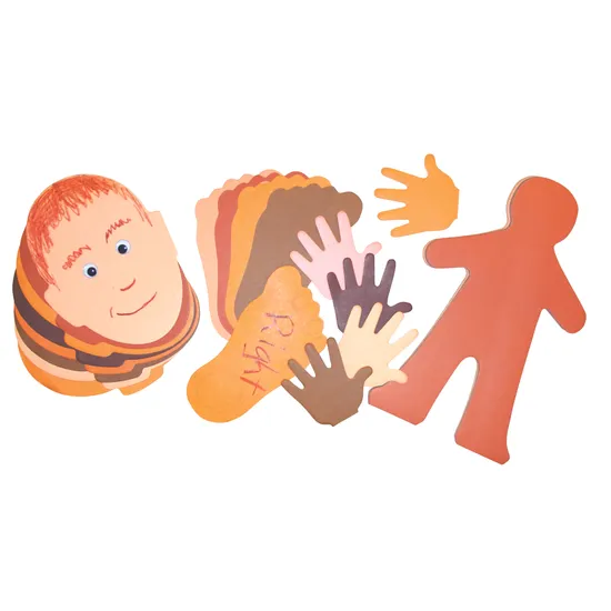 The Human Paper Shapes Kit is a versatile and inclusive collection of 160 pre-cut paper shapes in 8 different skin tones, designed to support a wide variety of open-ended classroom activities. Suitable for children ages 4+, this kit provides an excellent foundation for projects that explore identity, community, diversity, and creativity.