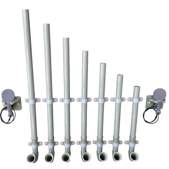 - Includes seven tuned pipes of varying lengths and two paddles.