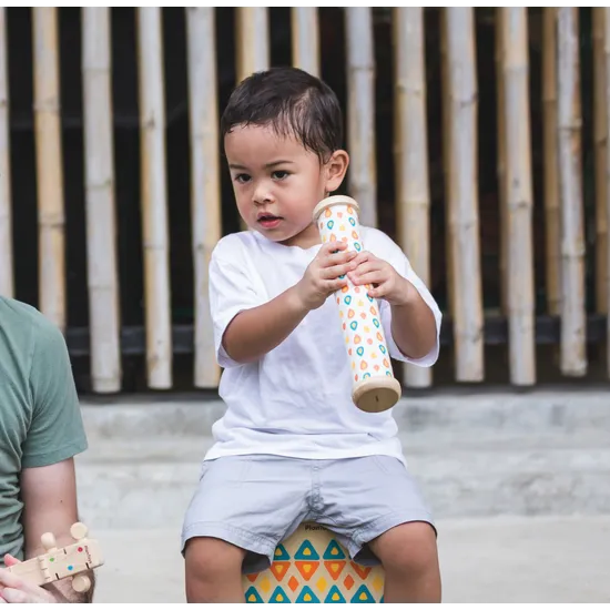 The PlanToys Rain Maker is a soothing and captivating musical instrument that brings the calming sounds of rainfall indoors. When turned over, this eco-friendly toy produces a gentle, tranquil noise, mimicking the sound of rain, which is perfect for creating a calming atmosphere in any learning environment. Ideal for children aged 18 months and up, the Rain Maker helps develop auditory awareness and sensory exploration. This peaceful toy can be combined with other PlanToys musical instruments to create a harmonious band, enhancing group play and encouraging collaborative music-making. Crafted from sustainable rubber wood, this eco-friendly instrument provides both an enjoyable and environmentally responsible play experience.