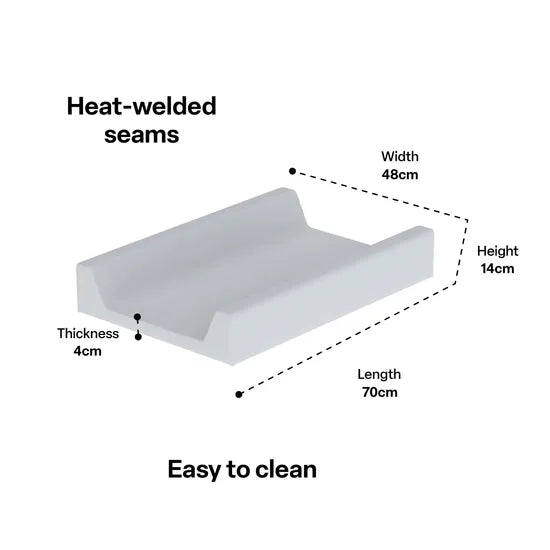 Featuring heat-welded seams, this smart design prevents moisture and germs from sneaking inside, supporting a more hygienic environment for daily routines. The concave centre and supportive foam padding gently cradle babies during changes, providing extra comfort and stability when it's needed most. A beautiful and reliable addition to any nappy change area, it's built to support safe and nurturing care, day after day.