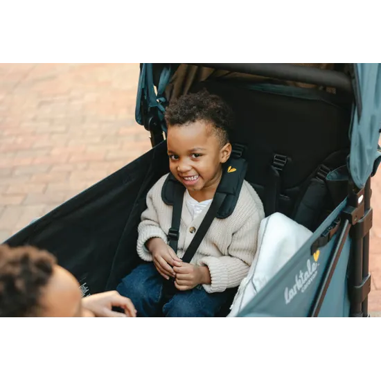 The Larktale Caravan Quad Stroller Wagon in Seaford Blue is the perfect solution for families on the go. With seating for up to four passengers, multi-position reclining seats, and a spacious footwell, it offers ultimate comfort for outdoor adventures.