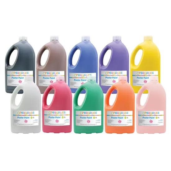 - 2L Poster Paints (Black, Brown, Blue, Purple, Yellow, White, Red, Green, Orange*, Pink*)
