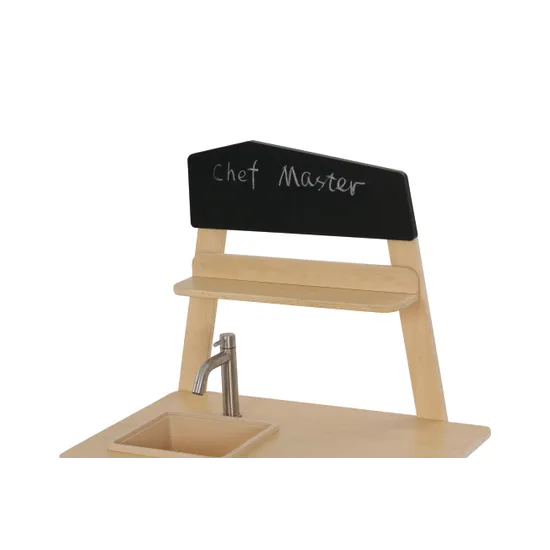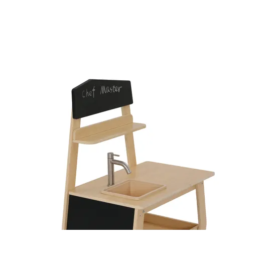- Encourages Imaginative Play: Provides a variety of interactive features - sink, tap, blackboards, and storage -encouraging dramatic play such as cooking, cleaning, and organising.