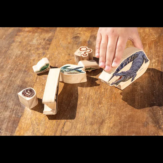 The Reptiles in the Wild set features 9 double-sided pieces, each beautifully crafted from NZ pine. This educational toy introduces children to a variety of reptiles, sparking curiosity about the natural world. Ideal for imaginative play, animal identification, and learning about wildlife.
