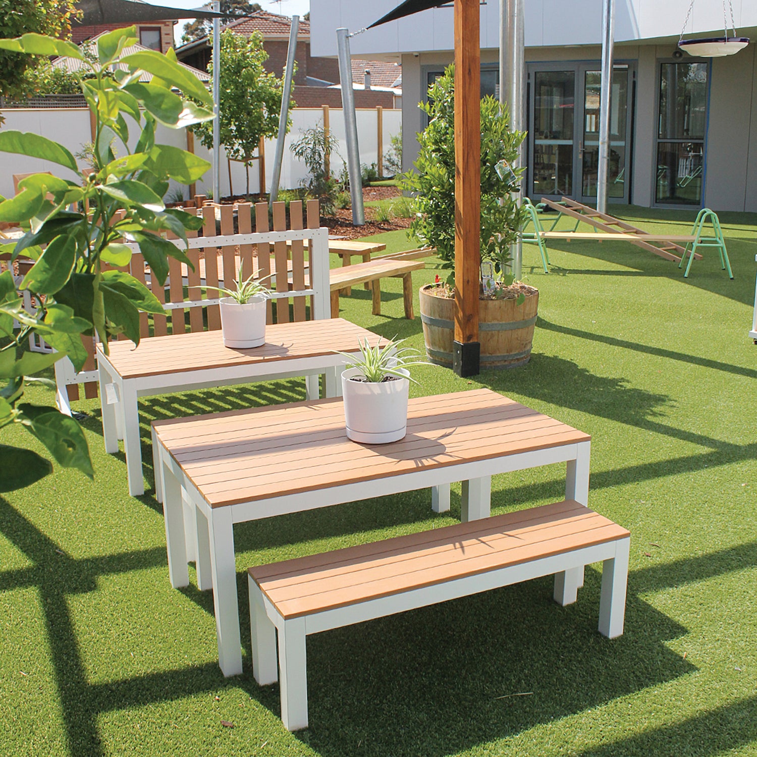Built to last! Our exclusive outdoor furniture collection has been designed specifically for the great outdoors. Made from a solid powder coated aluminium frame and Polywood, this range will not only withstand the elements of wind, rain and sun – it will also look great in your outdoor play areas. Also available in charcoal.