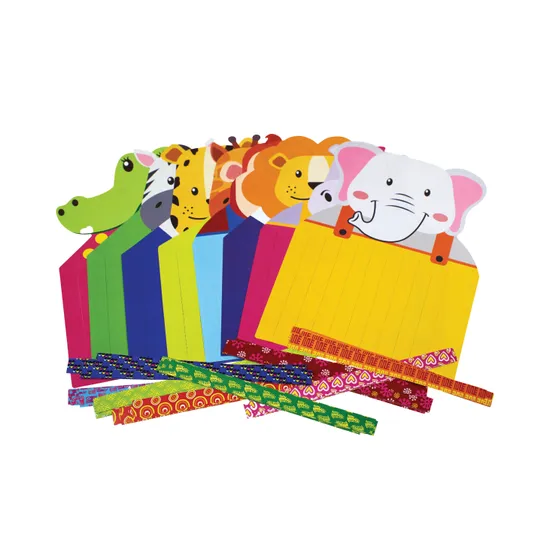 Explore the vibrant traditions of African culture with the Roylco Ashanti-Inspired Weaving Mats, a creative and educational activity that combines fine motor development with cultural appreciation. Each mat features a charming animal character, including a crocodile, hippo, zebra, giraffe, tiger, elephant, monkey, and lion, all beautifully decorated with Adinkra symbols that reflect the rich heritage of the Ashanti people. Children are guided through an engaging weaving process, threading colourful paper strips through the animals' bodies to create textured, patterned artworks. This activity not only supports pattern recognition and dexterity, but also provides an accessible entry point into cross-cultural learning, helping children gain a deeper respect for global traditions. Made from eco-friendly, sustainable paper, these mats reinforce the importance of environmentally conscious crafting. With easy-to-follow instructions, they are ideal for individual or group activities in classrooms, after school programs, or at home. The African Animal Weaving Mats provide a meaningful, hands-on way for children to express themselves while developing critical cognitive and physical skills.