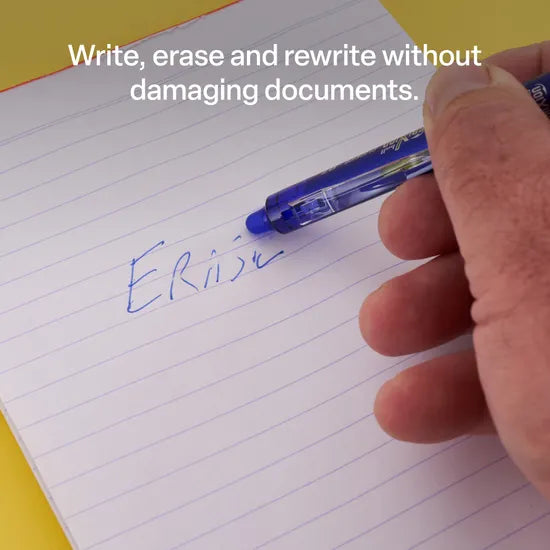 The Pilot FriXion Clicker is a retractable, erasable gel ink pen that lets you write, erase, and rewrite without damaging your documents. Featuring unique thermo-sensitive ink, it delivers vibrant colour and smooth writing, making it perfect for note-taking, scheduling, and editing. The built-in eraser removes mistakes cleanly with no wear or tear, while the retractable design offers convenience at your fingertips.