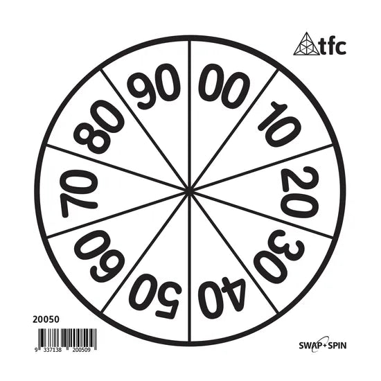 Explore the tens place with this clear and concise spinner insert featuring numbers from 00 to 90. Perfectly designed for place value lessons, it offers students a tactile way to understand the significance of tens in number construction. The insert fits the Smart Spinner Case and can easily be used on an overhead projector to engage the entire class.