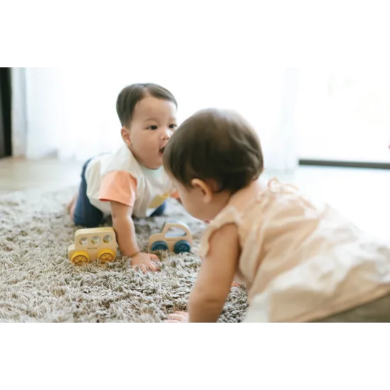 - Gross Motor Activities: Set up a mini road or track for children to roll the bus across, encouraging crawling, walking, or running as they push the bus.